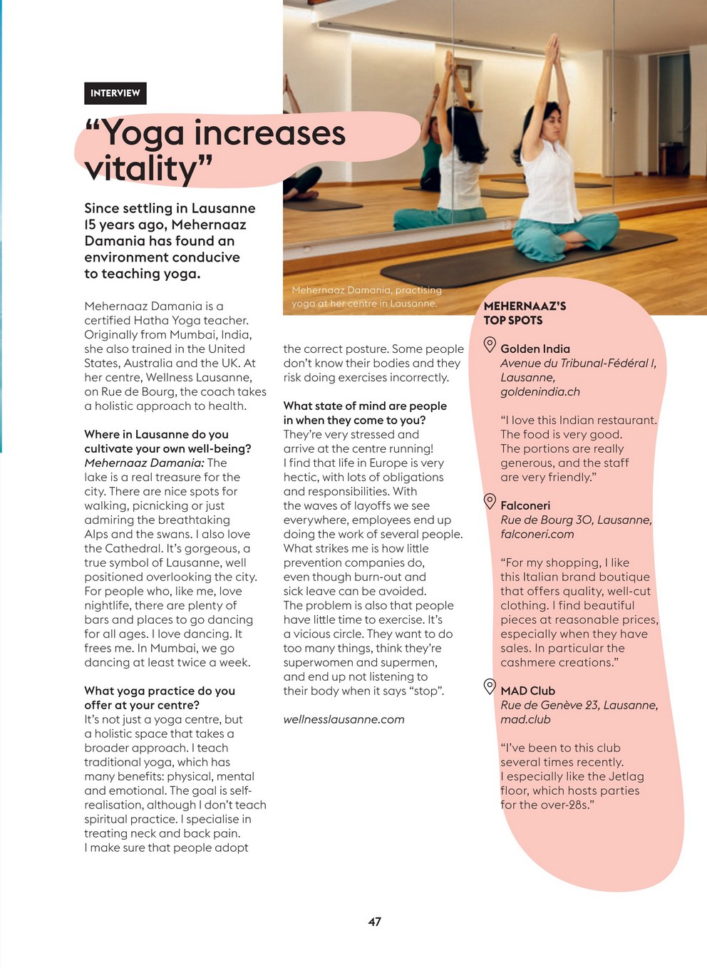 The various publications in the press bear witness to the benefits of good physical, mental and emotional wellness and well-being for an individual. It is no secret that the success of Mehernaaz’s services is thanks to an irreproachable quality of service, tailor-made and methodical support for the progress of each client.